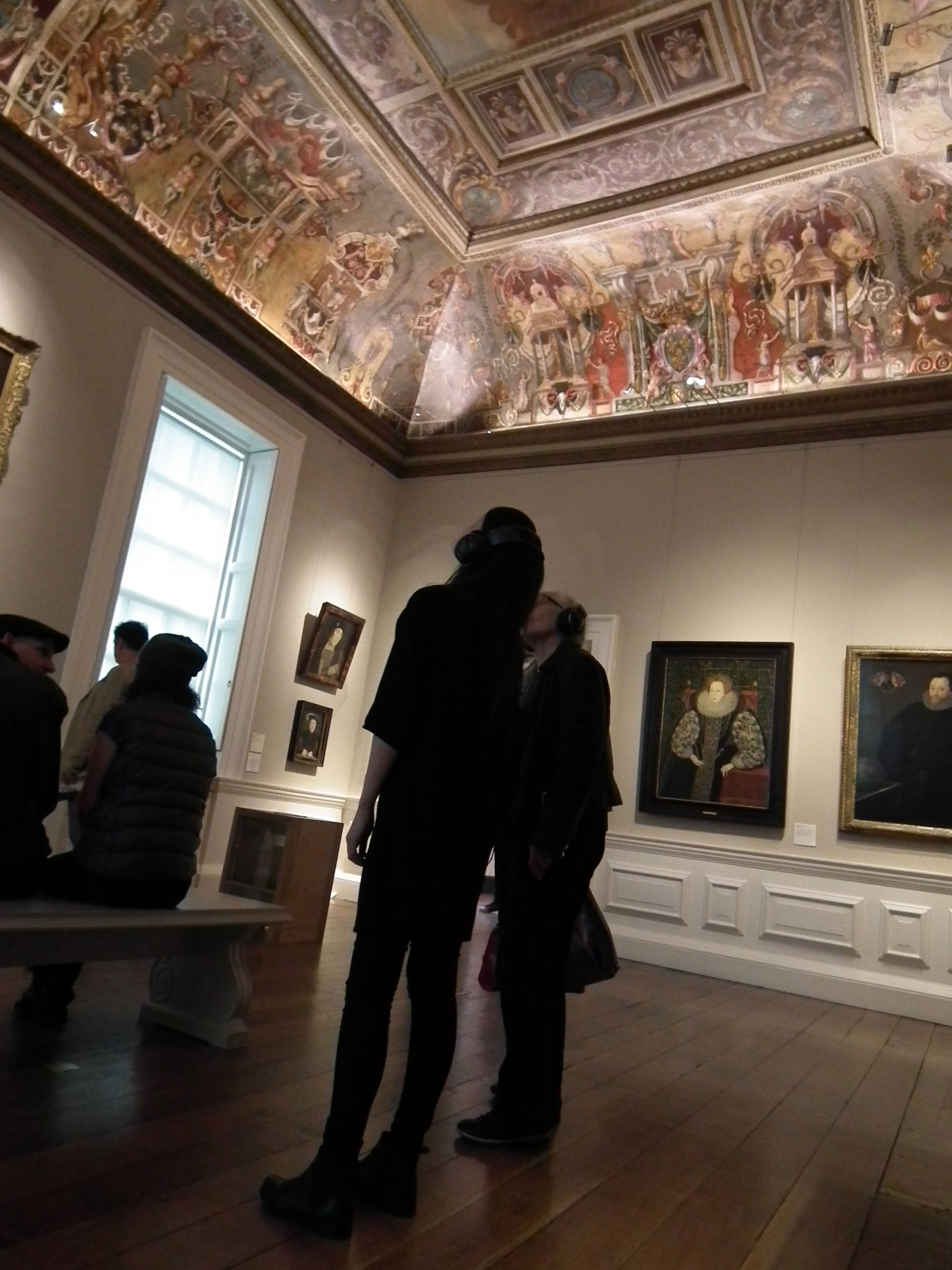 ‘Over Time project assistants at the museum: Sandra Louison and Stephanie Dickinson. ‘Insecurity’ jackets by Margareta Kern, 2014